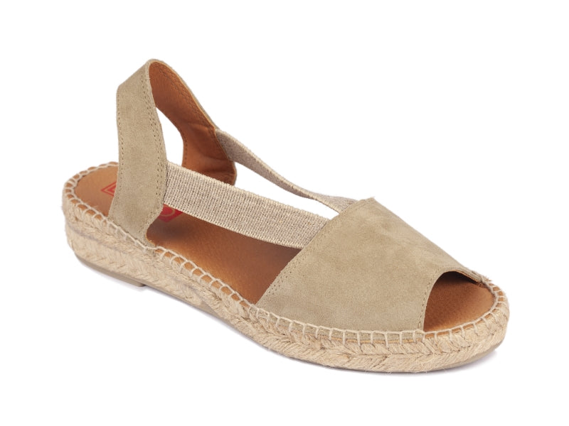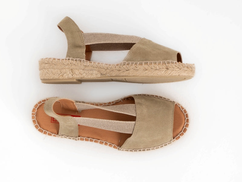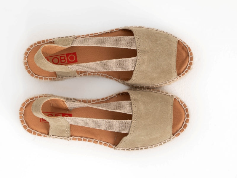 Alpargata de cuña baja de serraje con elásticos para mujer.