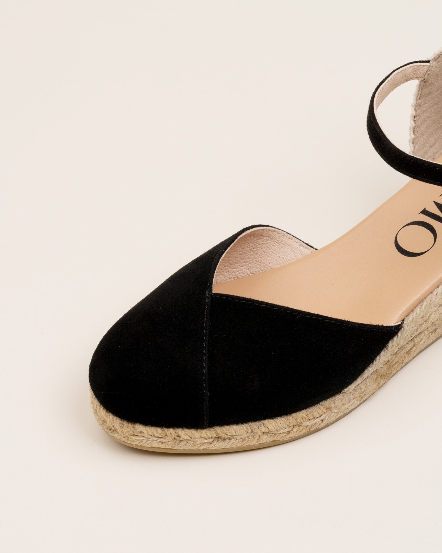 Las alpargatas Copita, confeccionadas en piel ante, presentan un diseño de corte cerrado con escote en pico y talonera con cierre de hebilla al tobillo. Con forro y plantilla de piel acolchada para un confort superior y cuña de yute ecológico, combinan estilo y sofisticación. Diseñadas y fabricadas artesanalmente.