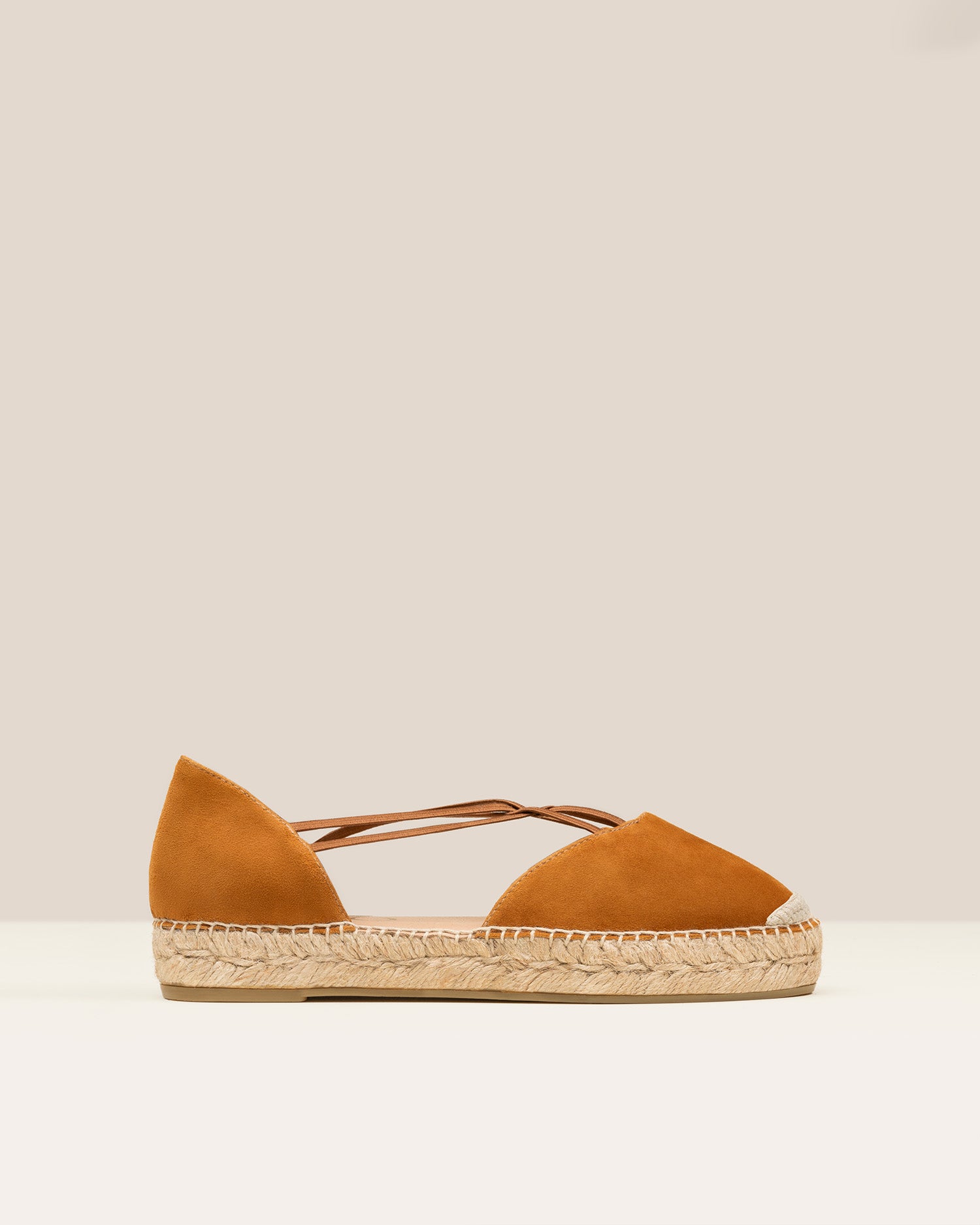 Las alpargatas Lovey de piel ante con corte cerrado y tiras elásticas cruzadas que aportan sujeción y un toque muy actual. Son elaboradas de forma artesanal con materiales de alta calidad.
