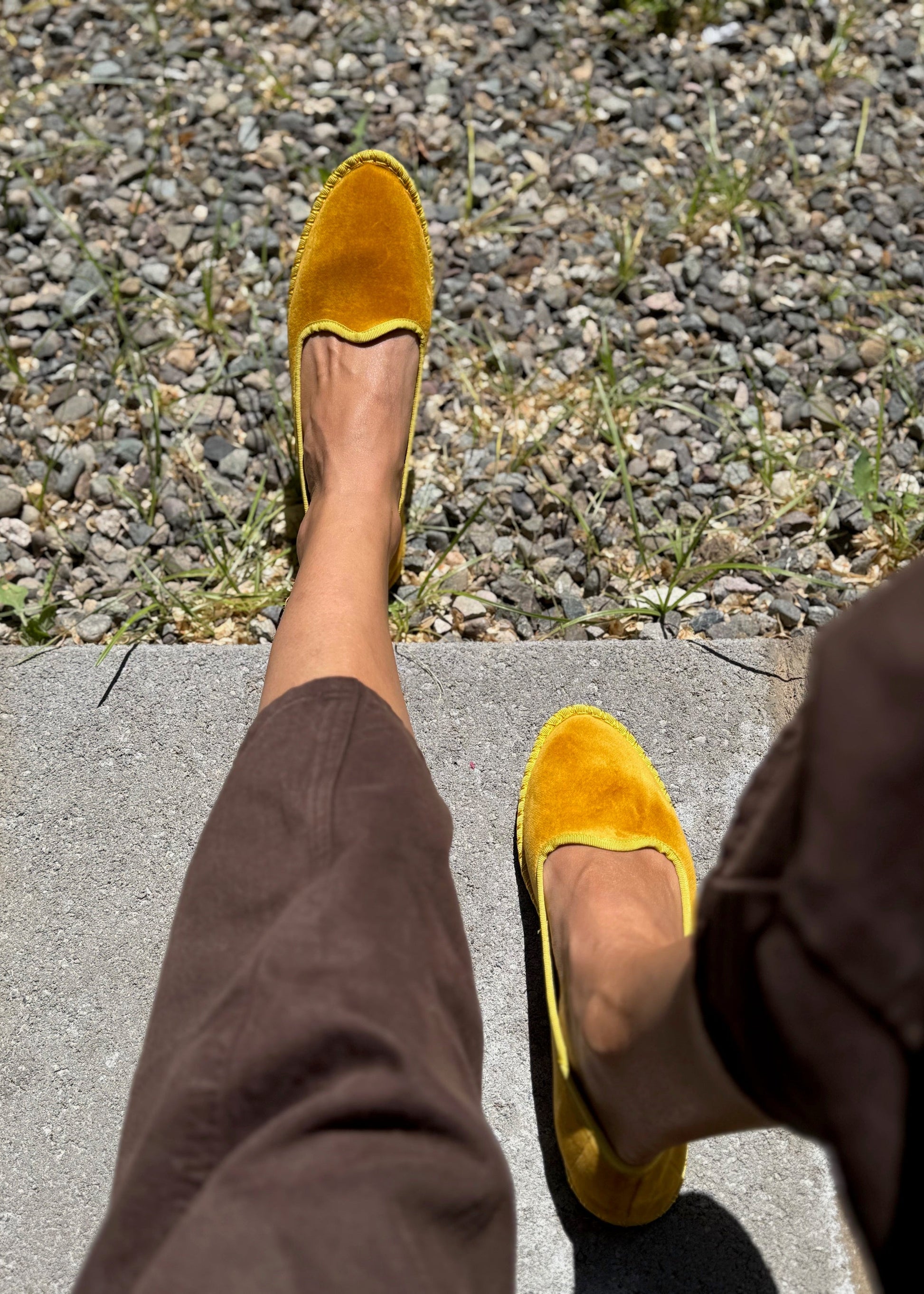 Zapato Mercedita Veneciana, conocidas también como Friulane. Confeccionadas en suave terciopelo de algodón,  son el complemento perfecto para tus pies.