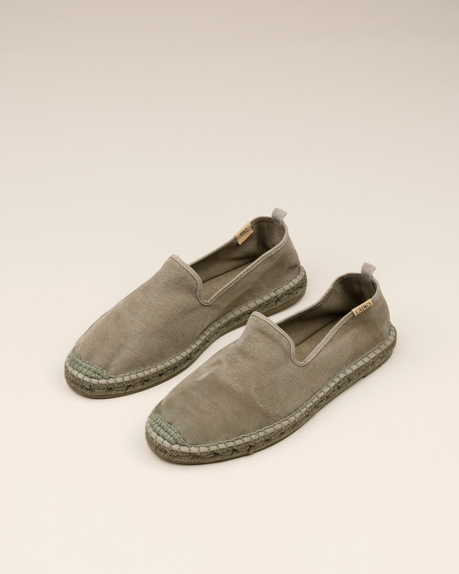Las alpargatas Cangrejo reinventan el clásico mocasín con un toque natural. Confeccionadas en algodón efecto lavado y acabadas con un elegante detalle de copete, están diseñadas y fabricadas artesanalmente con materiales naturales.