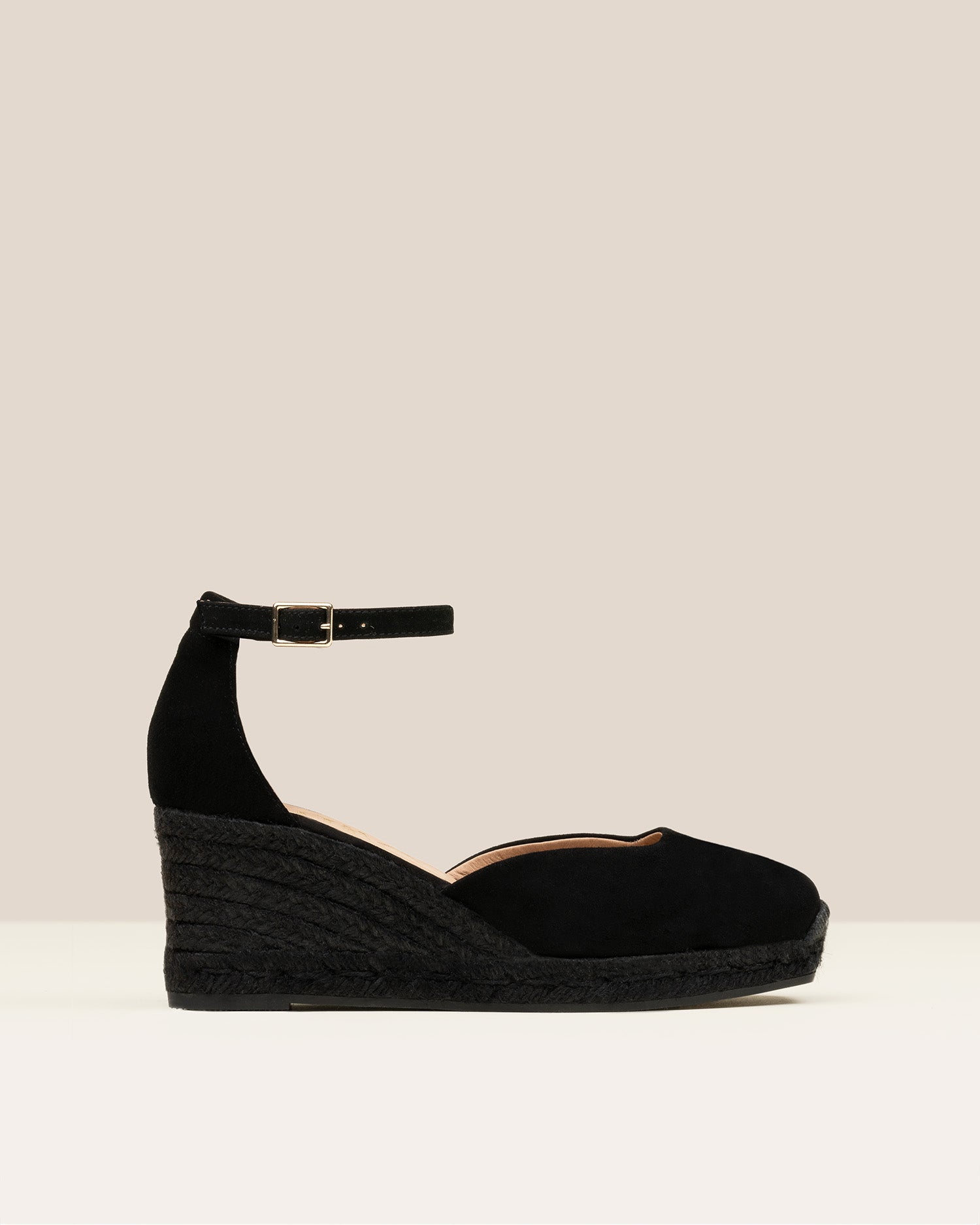Las alpargatas son un clásico veraniego, con su diseño cerrado en suave piel de ante, escote cuadrado, pulsera ajustable al tobillo y cuña al tono. Diseñadas y fabricadas artesanalmente con materiales 100% naturales.