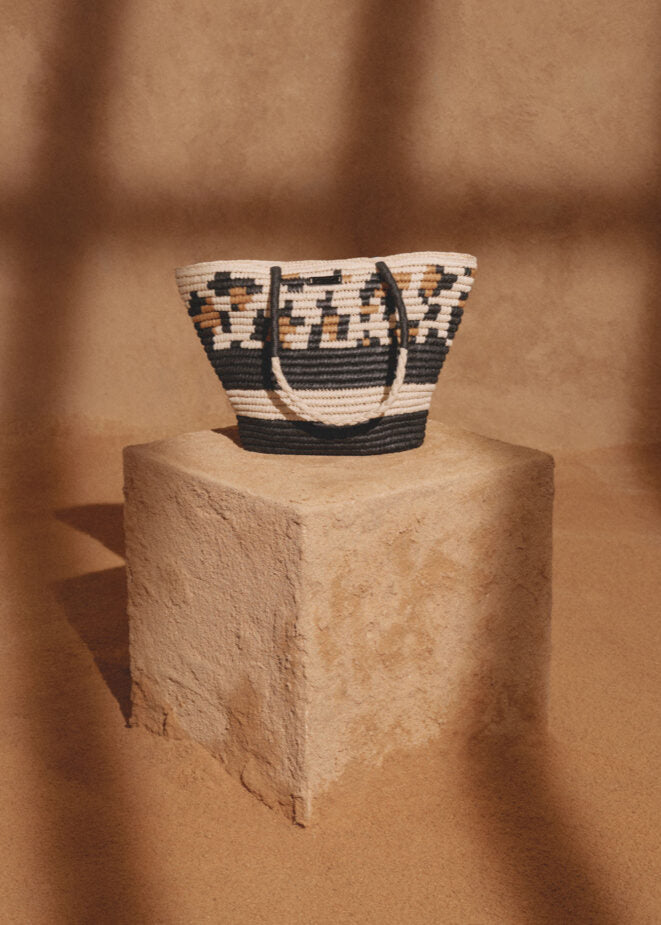 Bolso de mujer en trenzado rafia con estampado de leopardo. Con cierre mediante cremallera, forro interior de algodón y asa larga de hombro. Un diseño atemporal en tonos tierra fácil de combinar con cualquier look para un día de verano o para esas vacaciones soñadas, además cuenta con el tamaño perfecto para llevar todo lo imprescindible.