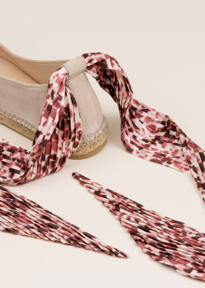 Cintas Selene con estampado de puntos rosados. El accesorio más especial de este Verano, lo podrás utilizar para crear otras combinaciones con tus alpargatas, como accesorio para el pelo, bolso o cinturón. Crea diferentes looks intercambiando las cintas, combínalas y elevarás cualquier conjunto veraniego.