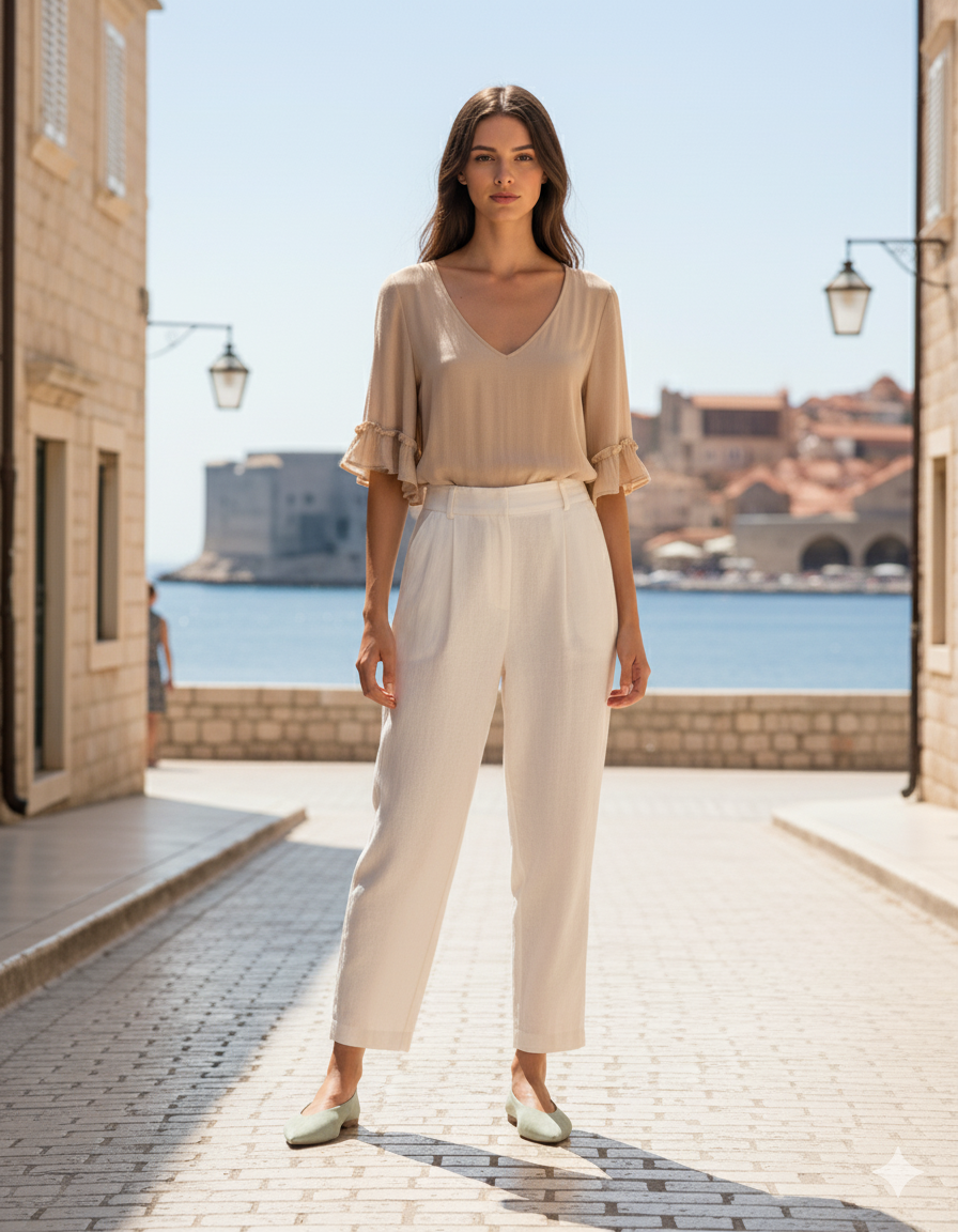 Este zapato tipo bailarina, es un zapato cómodo y plano para vestir de día y noche. Tiene un look simple y a la vez elegante para elevar tu outfit.